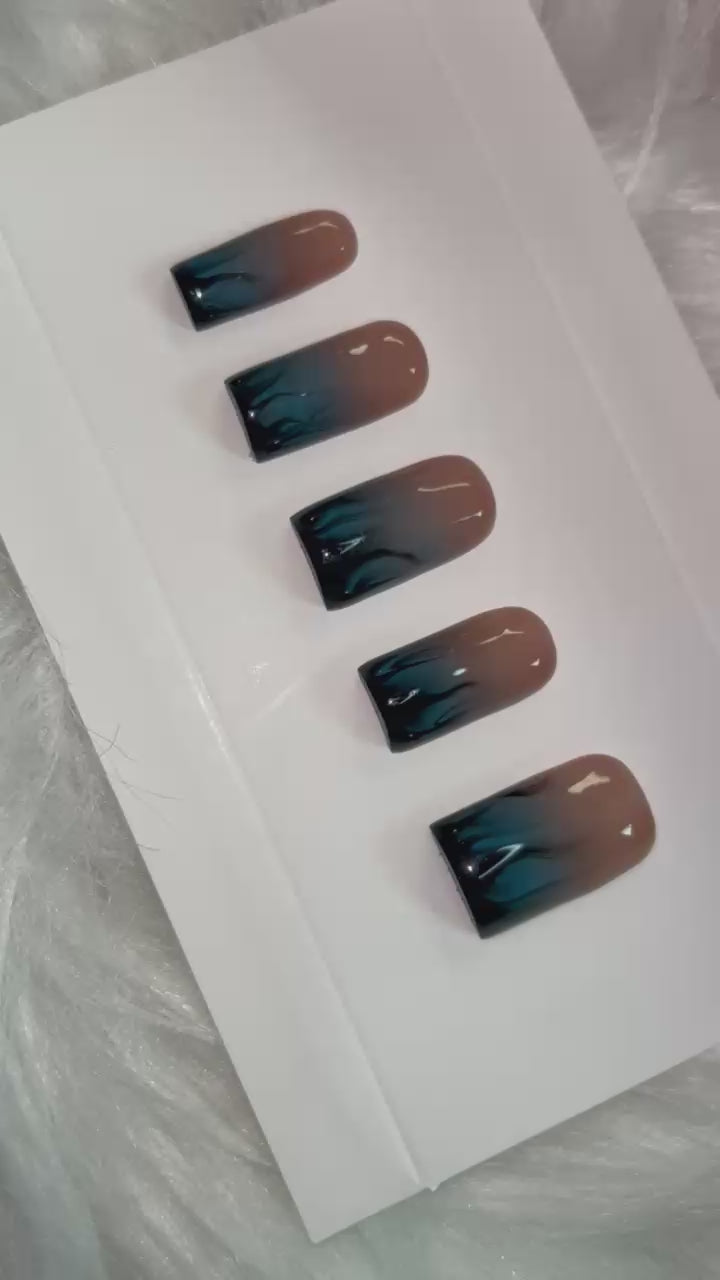 Channel your inner sea goddess with H2O Cleo β a sultry, deep-water-inspired set that flows with mystery and elegance. ππ¦ Featuring a smoky nude-to-black ombrΓ© base, accented with liquid-like teal and black swirls π«οΈπ, this design captures the essence of dark ocean depths and moonlit tides ππ. The glossy finish adds a hypnotic, glassy sheen π, perfect for a sleek and sophisticated vibe.